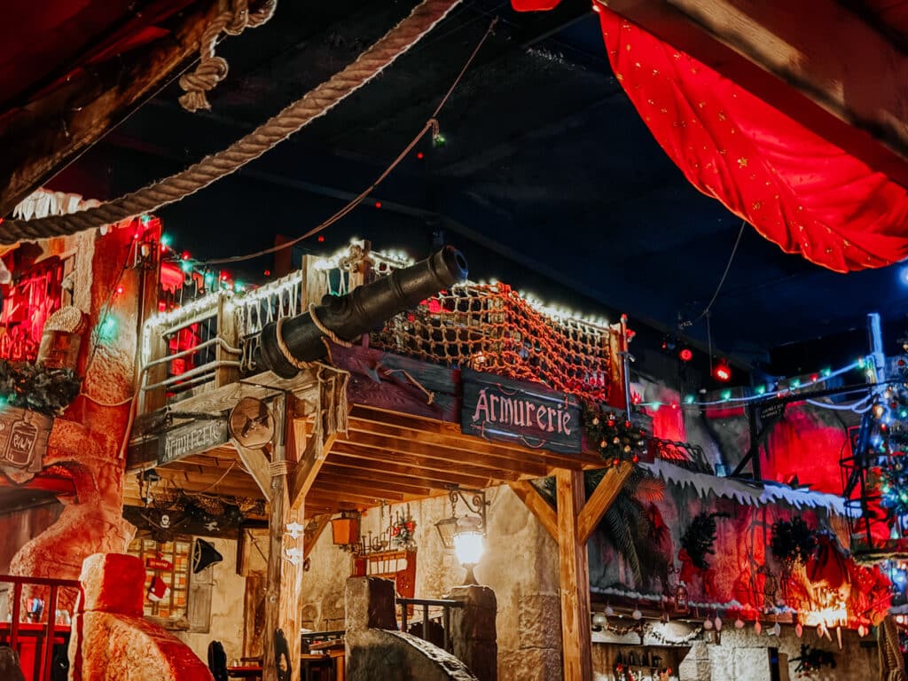 La table de la rhumerie est idéalement située pour profiter de l’expérience Gang de Pirates. C’est un espace intimiste en haut d’un escalier avec une vue direct sur la scene. Idéal pour vos anniversaires et autres évènement festifs !